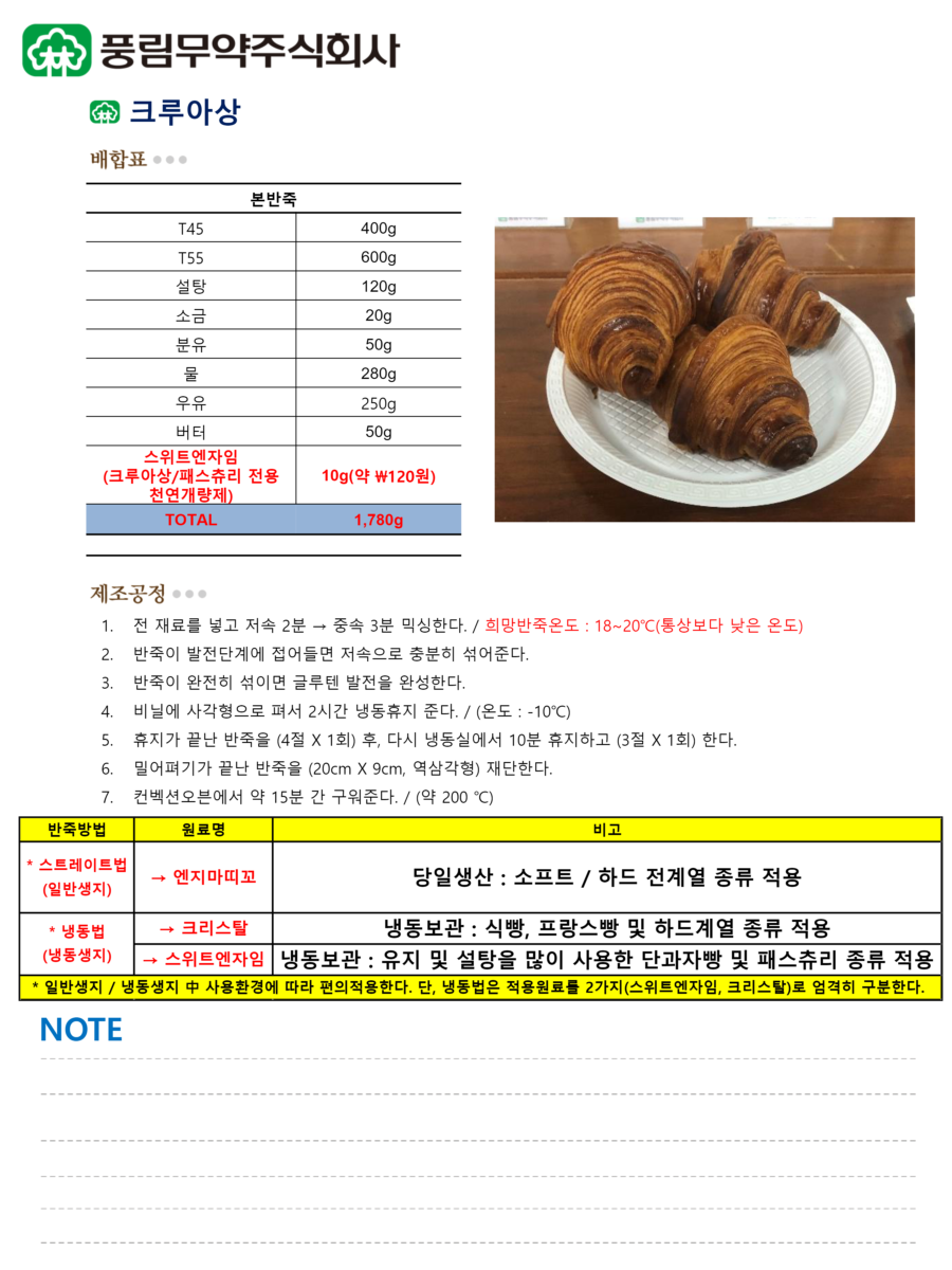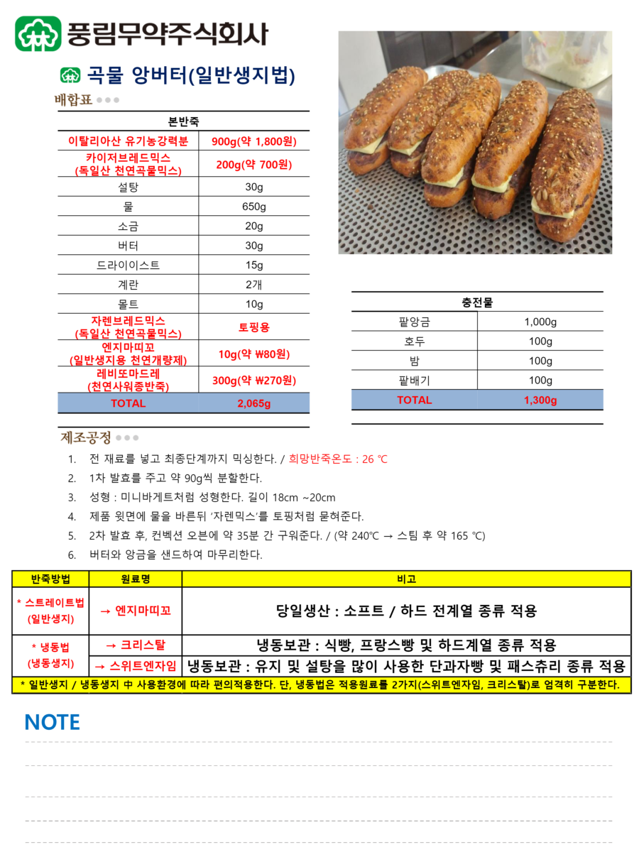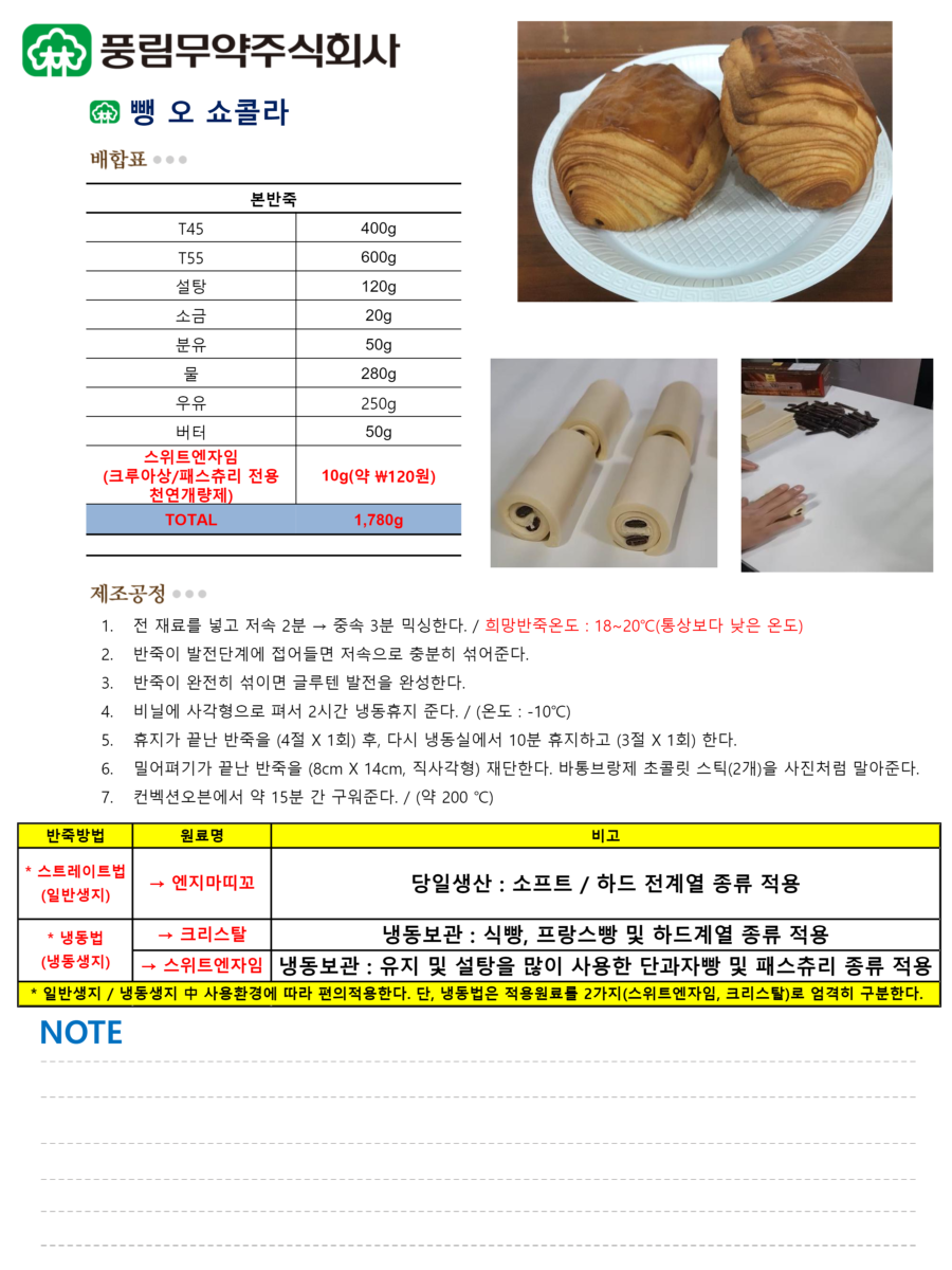 뺑 오 쇼콜라, 크루아상, 애플 패스츄리, 초코 바게트(냉동 생지법), 초코 바게트(일반 생지법), 곡물 앙버터(냉동 생지법), 곡물 앙버터(일반 생지법)