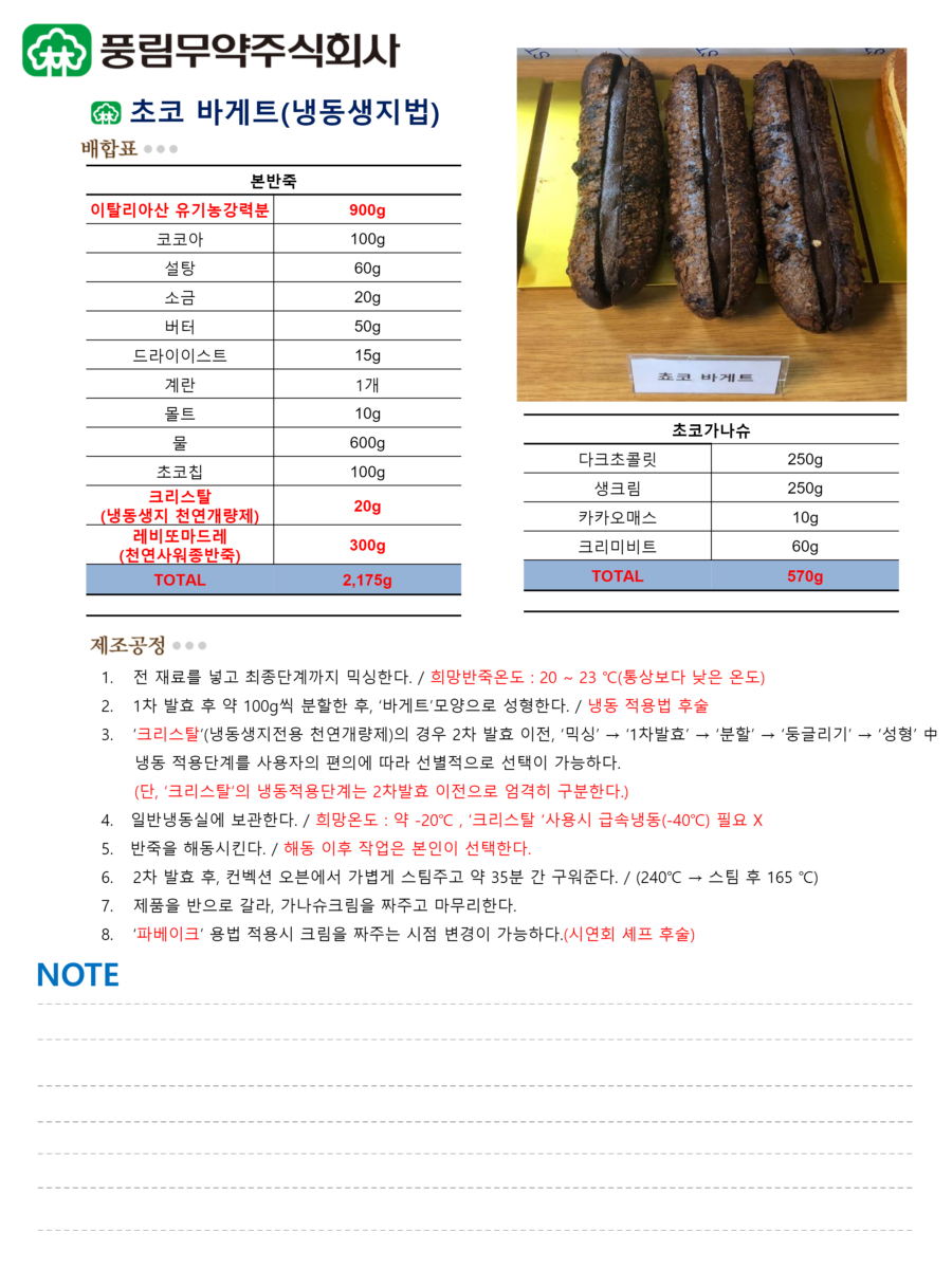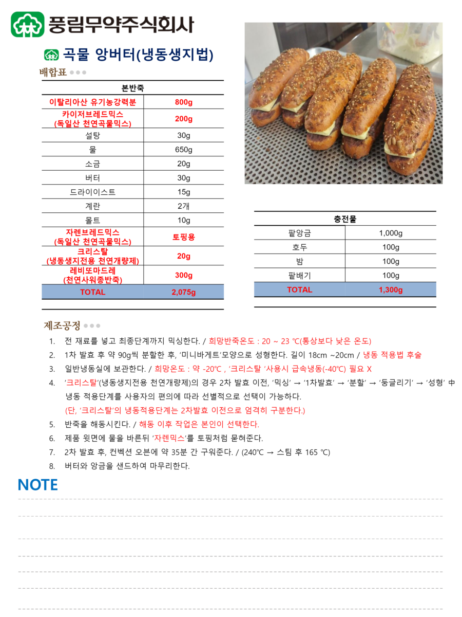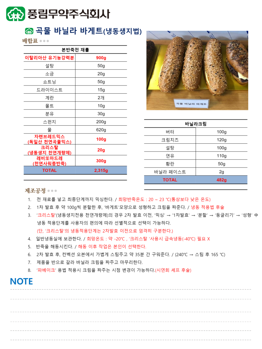 초코 바게트(냉동생지법), 초코 바게트(일반생지법), 곡물 바닐라 바게트(냉동생지법), 곡물 바닐라 바게트(일반생지법), 곡물 앙버터(냉동생지법), 곡물 앙버터(일반생지법), 유자 크루아상, 루스틱(저온숙성법)
