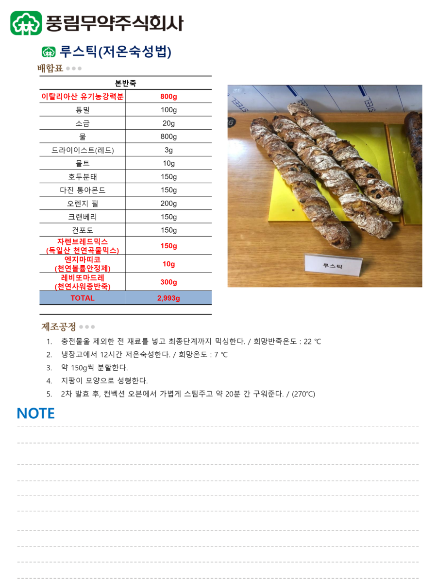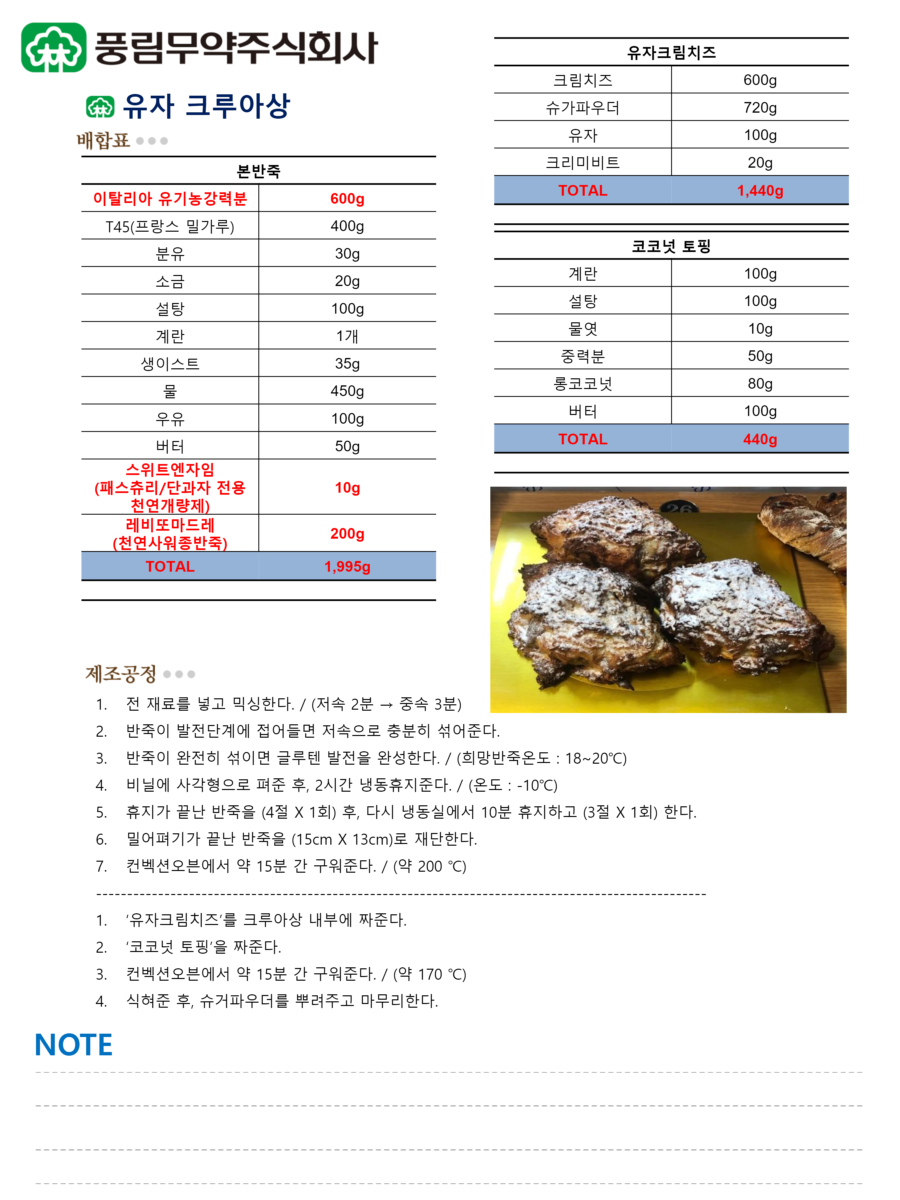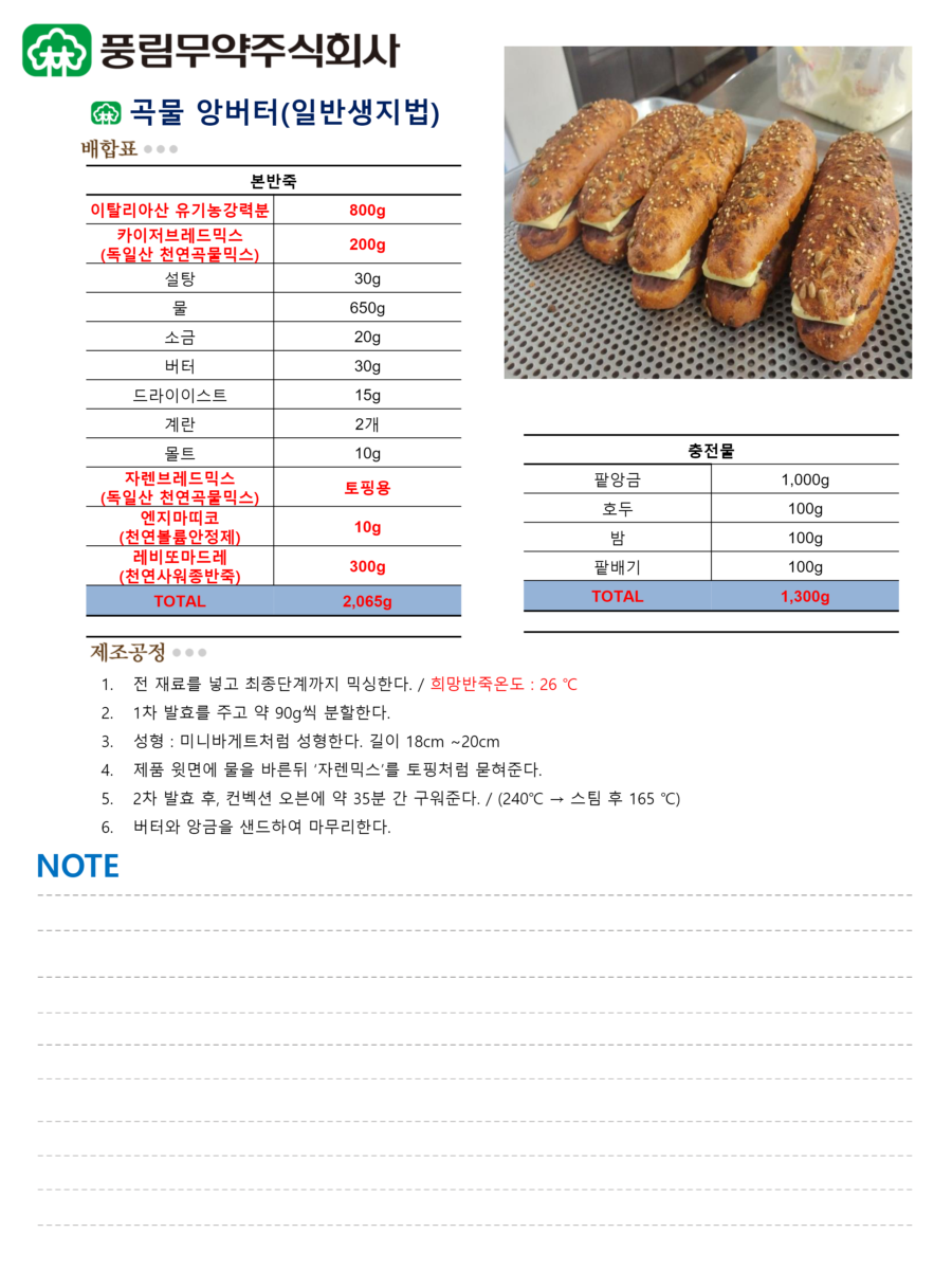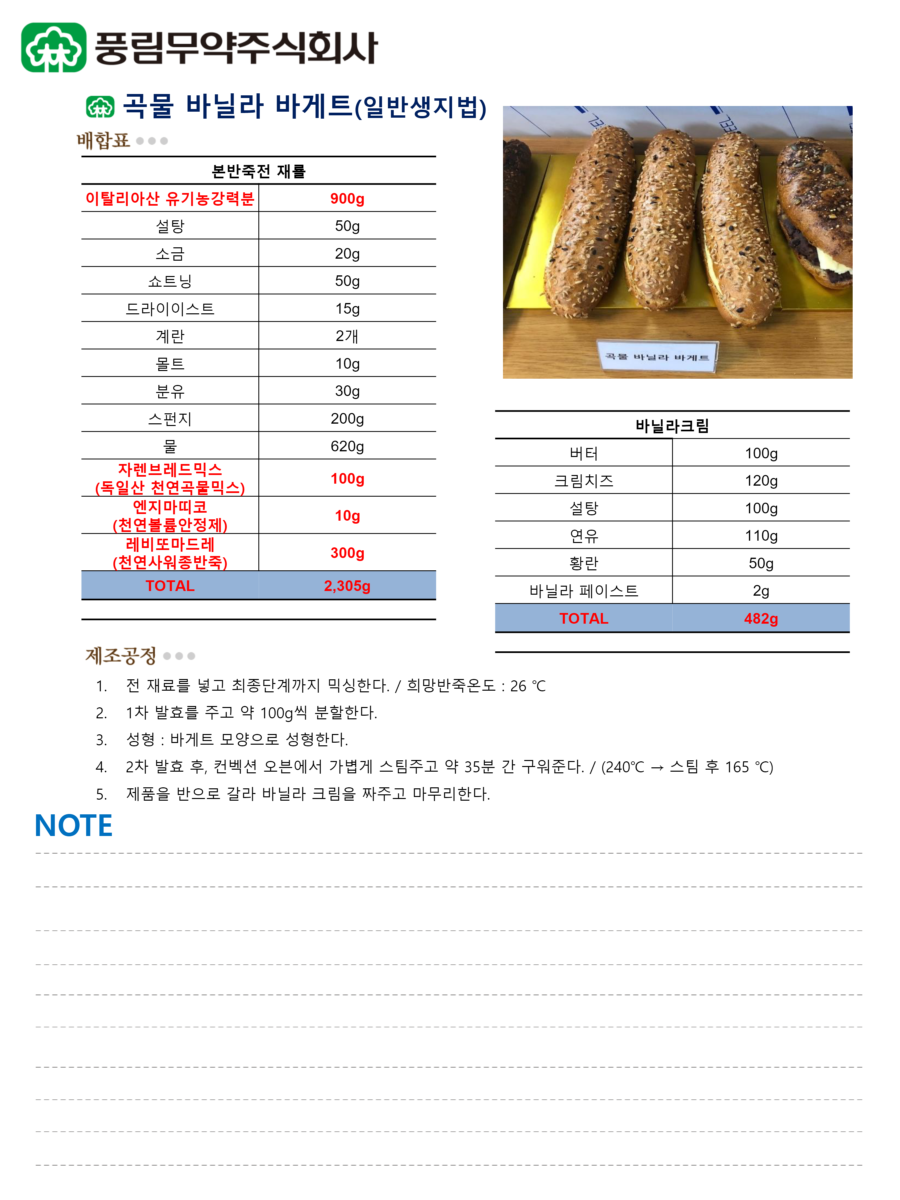 초코 바게트(냉동생지법), 초코 바게트(일반생지법), 곡물 바닐라 바게트(냉동생지법), 곡물 바닐라 바게트(일반생지법), 곡물 앙버터(냉동생지법), 곡물 앙버터(일반생지법), 유자 크루아상, 루스틱(저온숙성법)