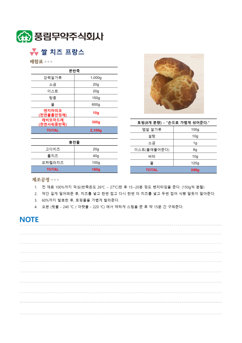 쌀 마늘 스틱, 쌀 치즈빵, 쌀 크림치즈 블루베리, 쌀 치즈 프랑스, 쌀 시오빵(소금빵)