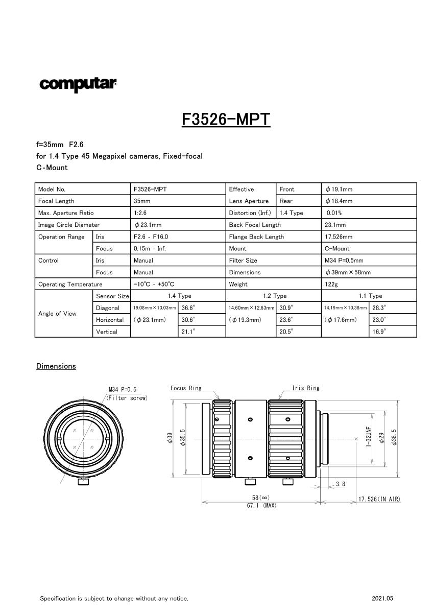 • 고정 초점 렌즈 (Fixed Focal) /FA용